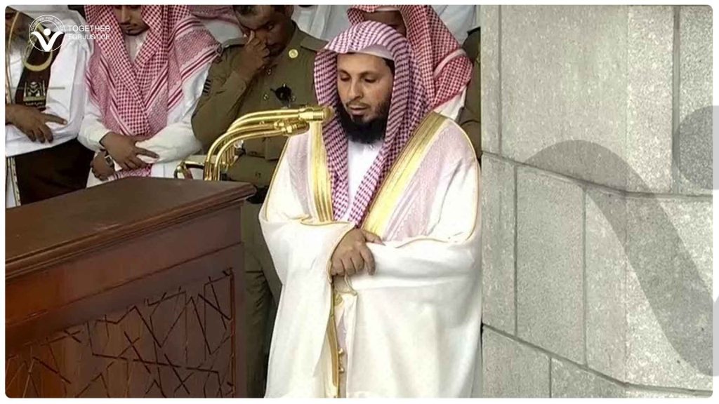 تجدّد منظمة معًا من أجل العدالة إدانتها الشديدة لاستمرار اعتقال إمام وخطيب المسجد الحرام، الشيخ الدكتور صالح بن محمد آل طالب، الذي يدخل عامه السابع في السجون السعودية لمجرد ممارسته حقه المشروع في التعبير عن الرأي، ورفضه الصريح لموجة التطبيع مع الاحتلال الإسرائيلي، وموقفه الثابت في الدفاع عن ثوابت الأمة ومقدساتها.