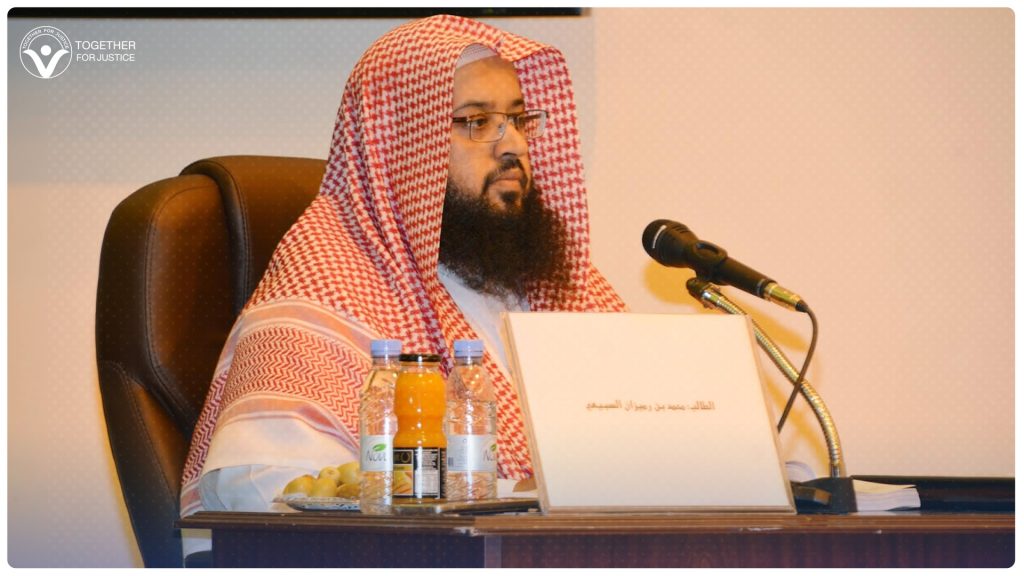 وتدعو منظمات حقوقية ومنها منظمة معا من أجل العدالة للإفراج عن الدكتور محمد رميزان السبيعي من سجون المملكة.